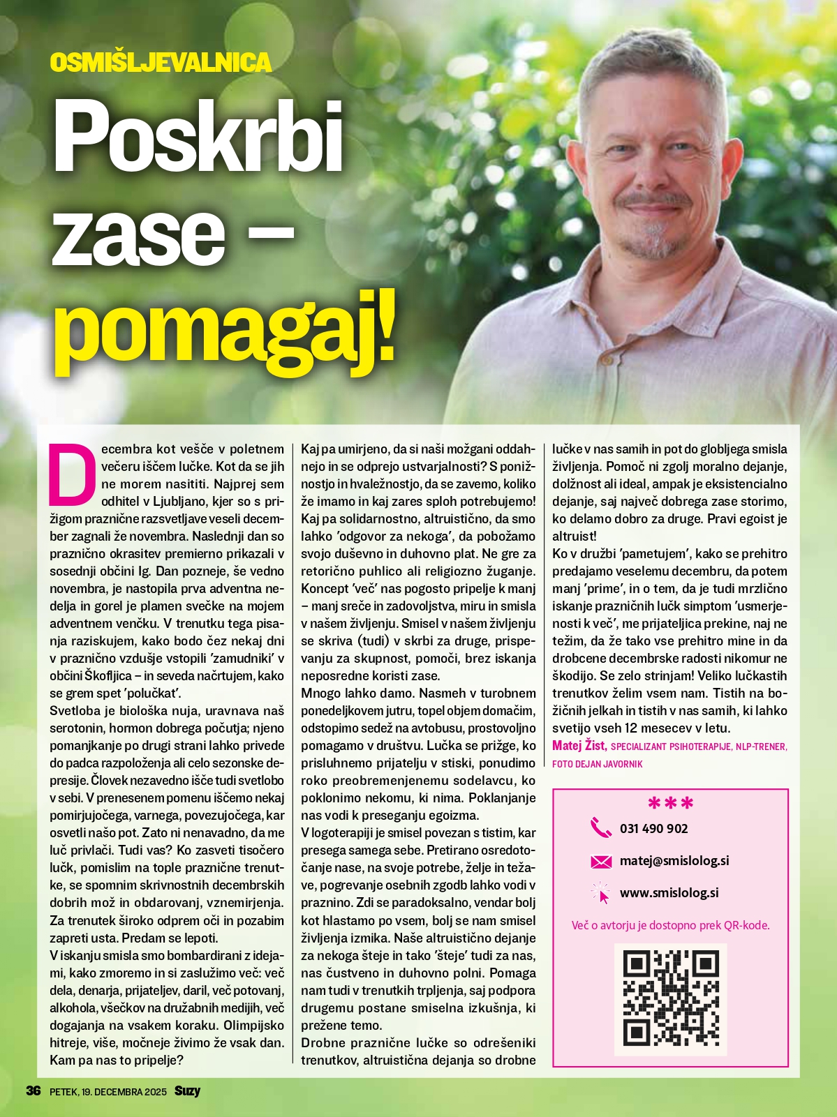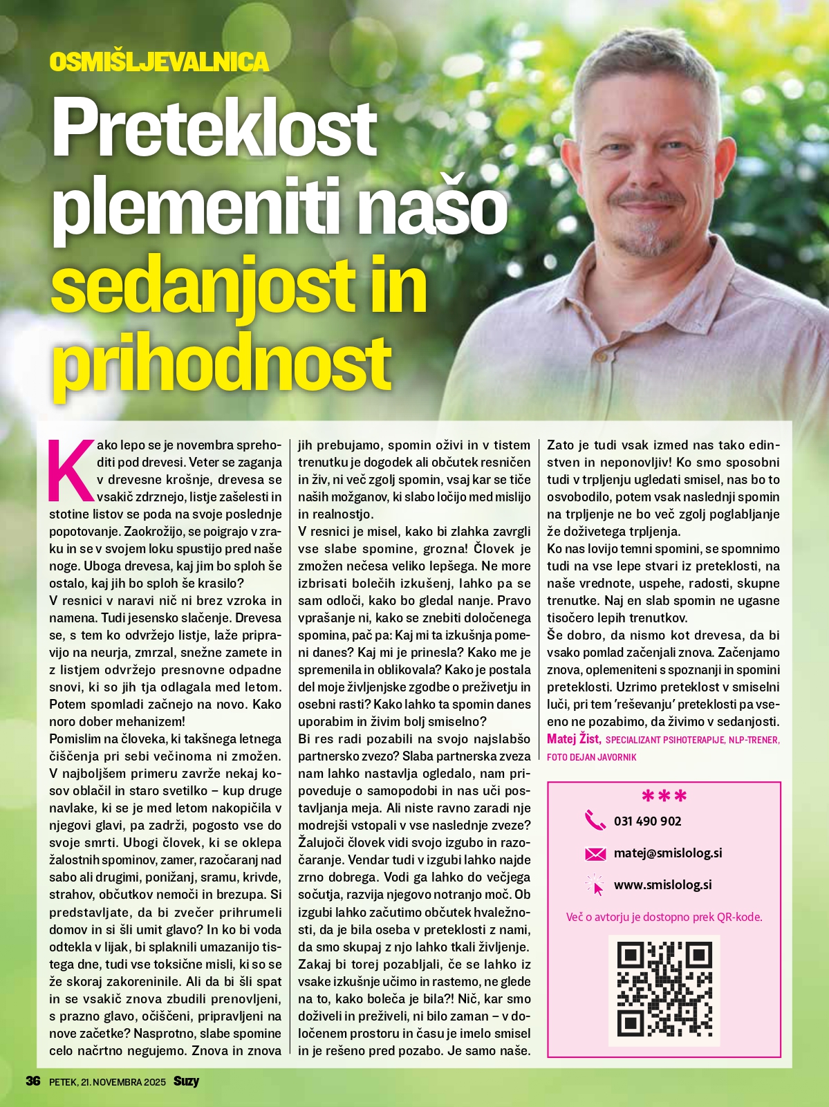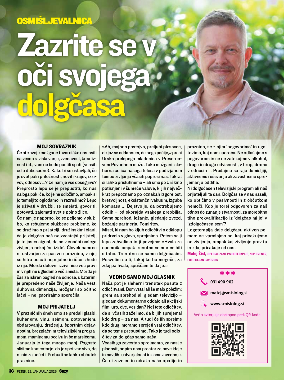 V reviji Suzy (Slovenske novice) lahko enkrat mesečno prebirate nasvete v rubriki Osmišljevalnica.