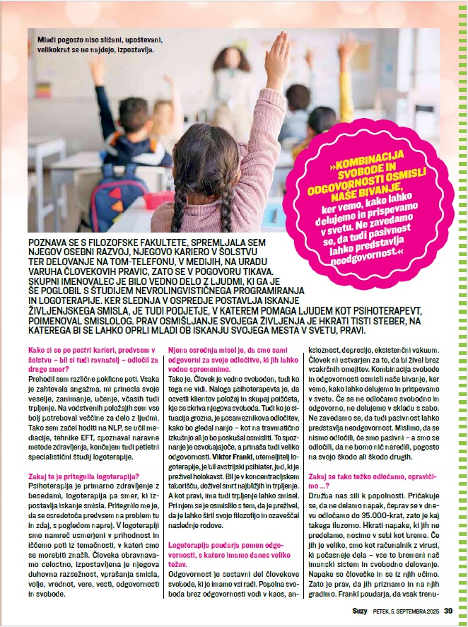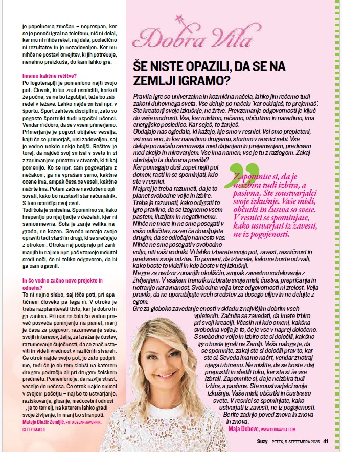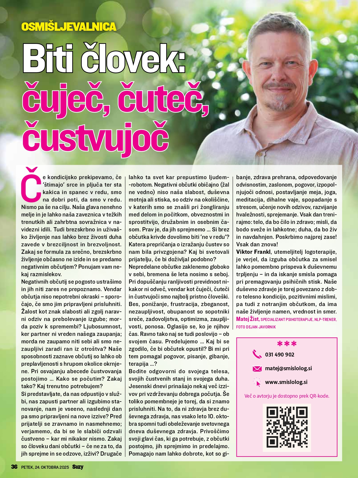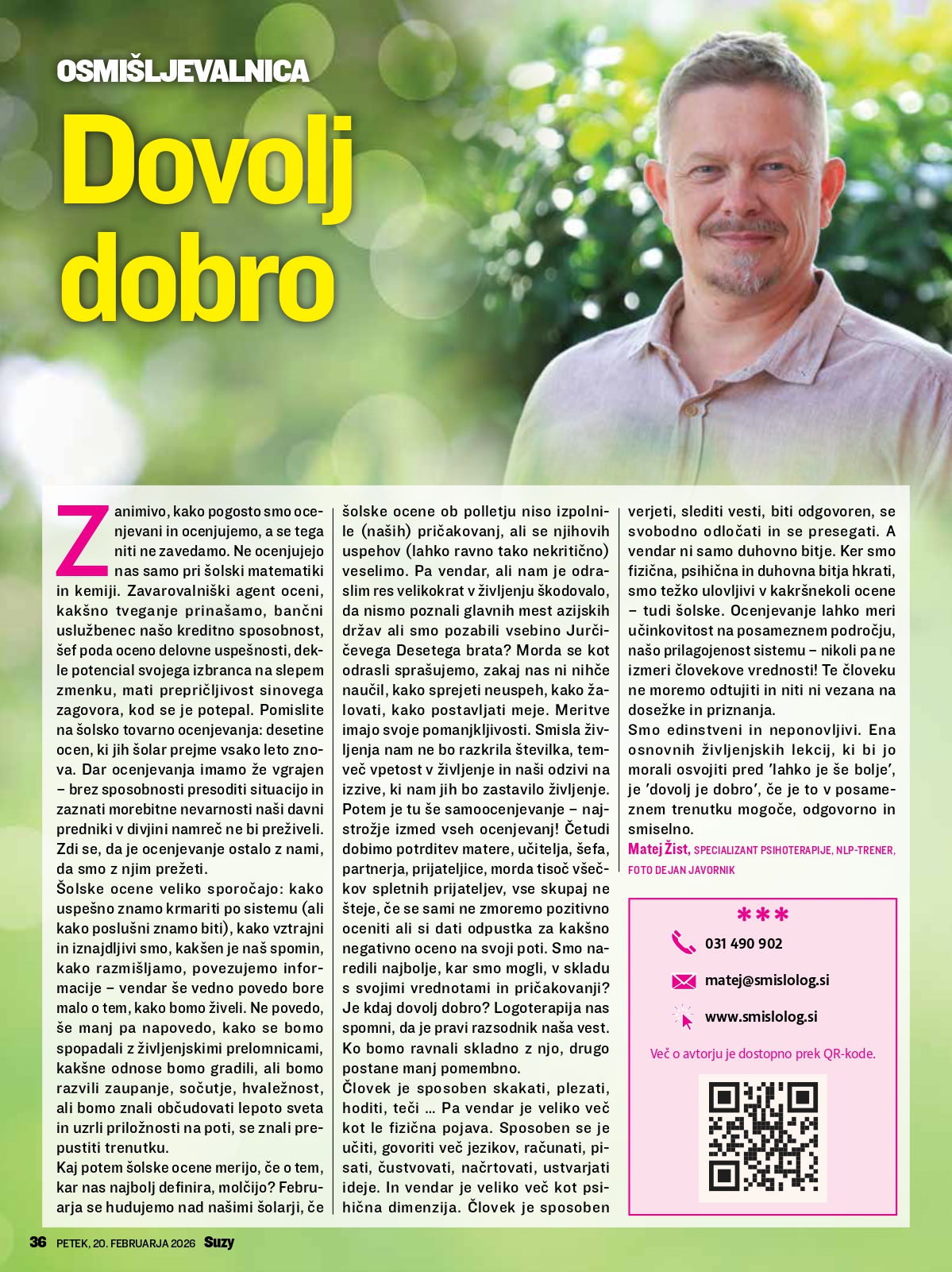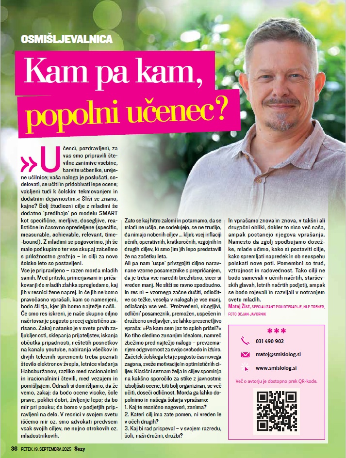 V reviji Suzy (Slovenske novice) lahko enkrat mesečno prebirate nasvete v rubriki Osmišljevalnica.